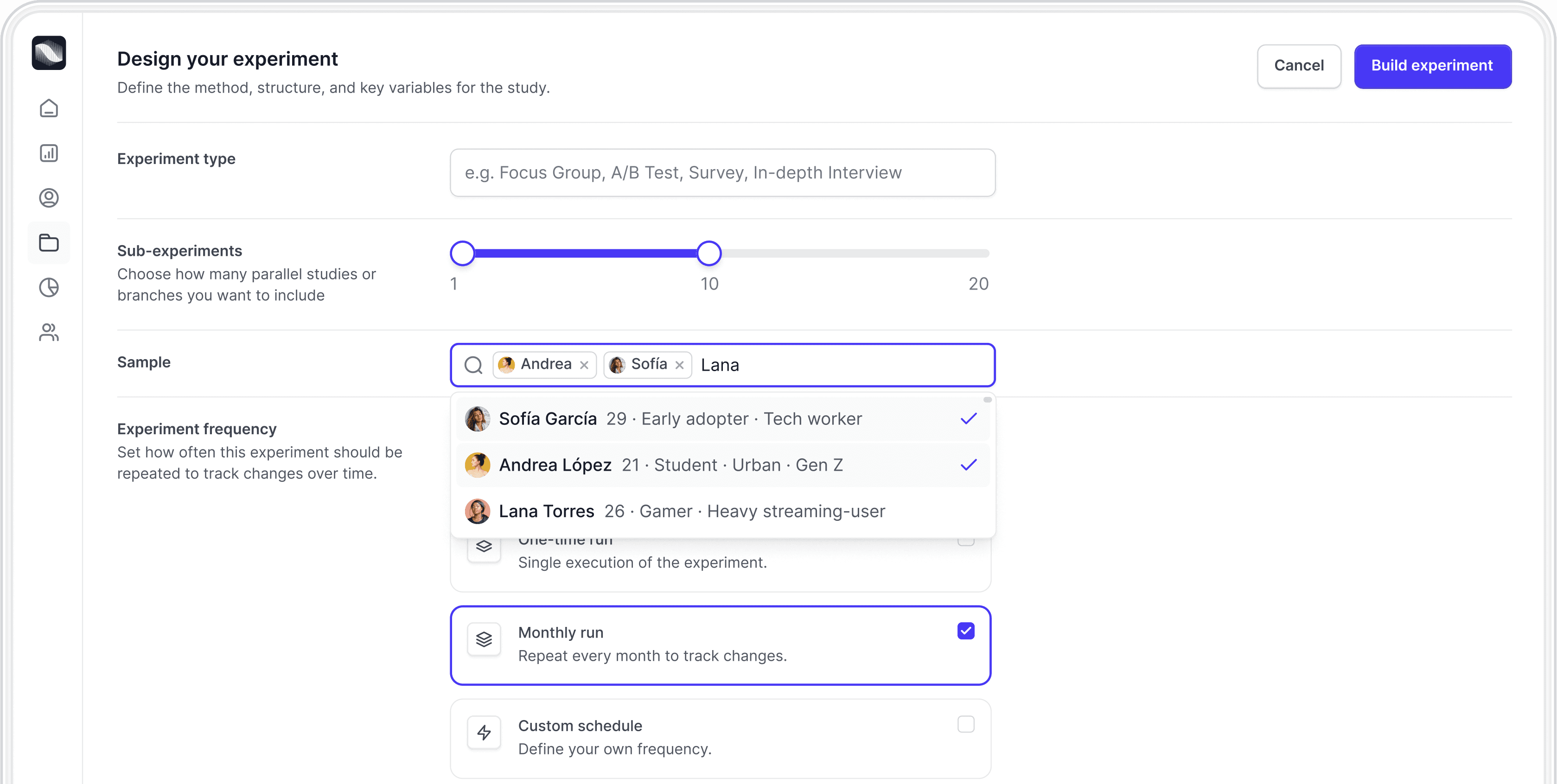 Build synthetic participants that represent the audience segments you need to understand.