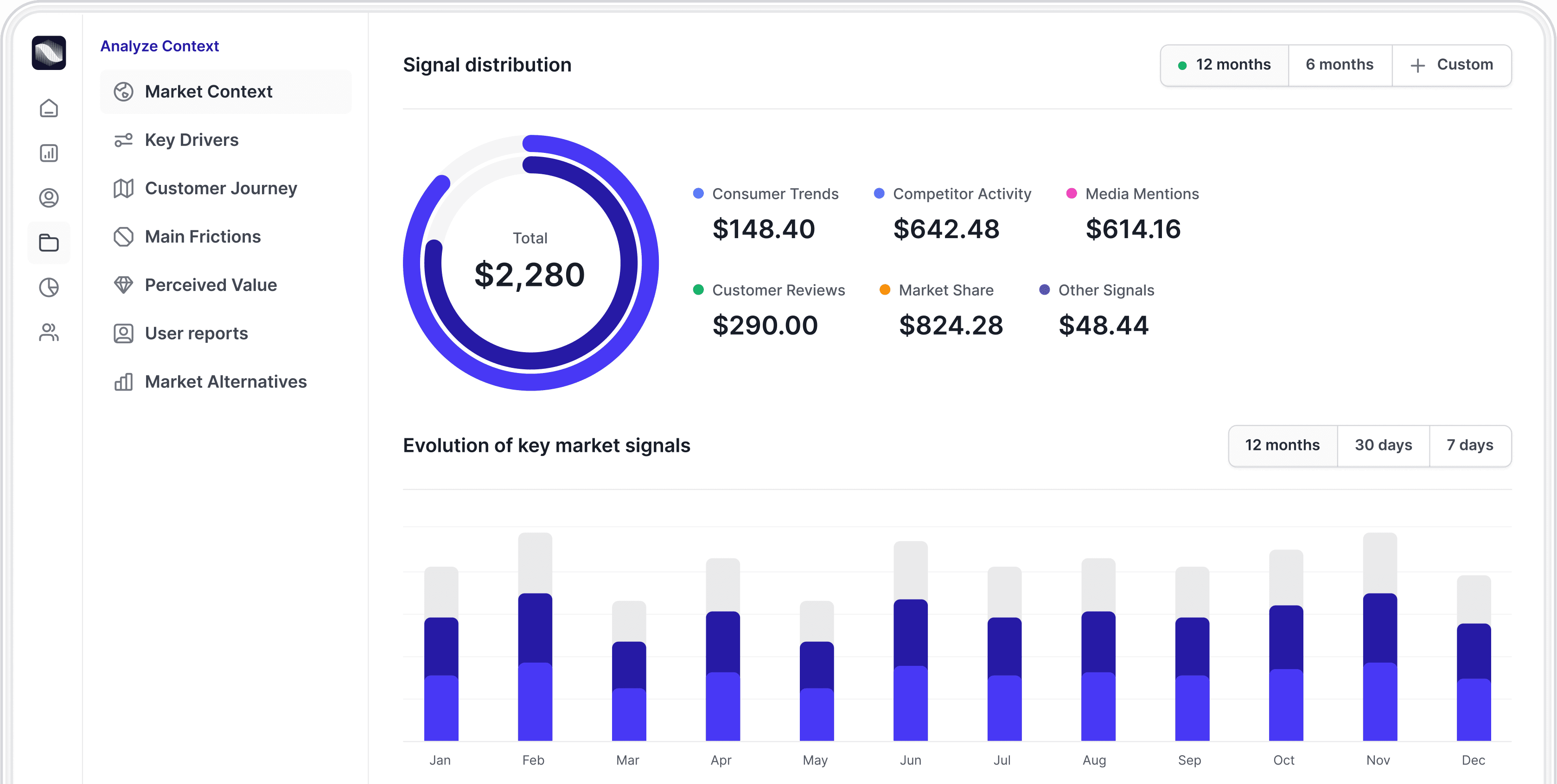 Spot market signals and validate strategy, messaging, design and pricing, prior to launch, powered by synthetic personas & simulated markets.