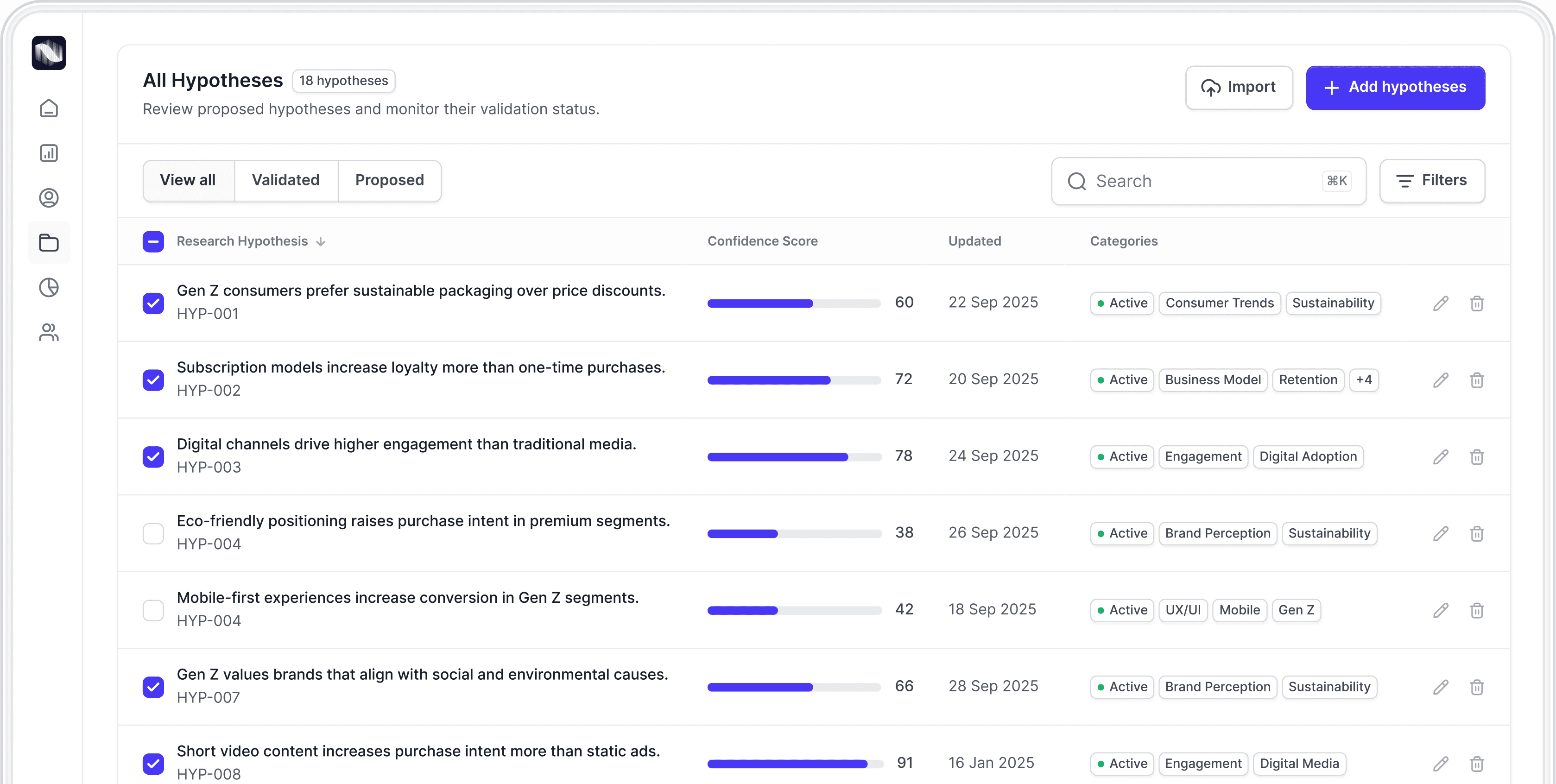 Generate testable assumptions that connect business objectives with market dynamics.